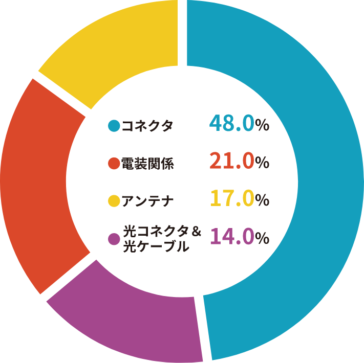 製品別売上全販売拠点の製品別売上構成比のグラフです。台湾に本社を構え、日本やアメリカなどに支社を構えております。