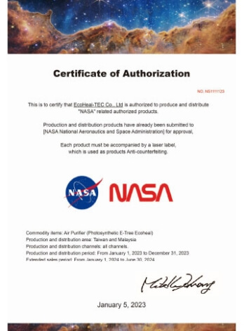 NASA認証取得証明書
